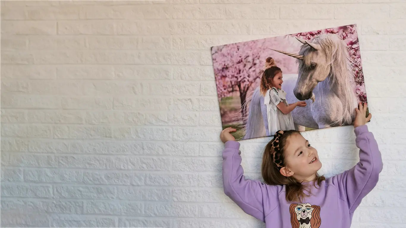 Creating a theme is about storytelling. Let us help you choose pieces that work together, making your Unicorn Bedroom not just a set of items, but a unified magical world. Besides a personalized unicorn portrait, you can also add other magical accessories like shimmering wall decals that mimic a starry night sky or a cozy unicorn-shaped pillow. These elements work together to create a complete and immersive unicorn experience in your child's bedroom.